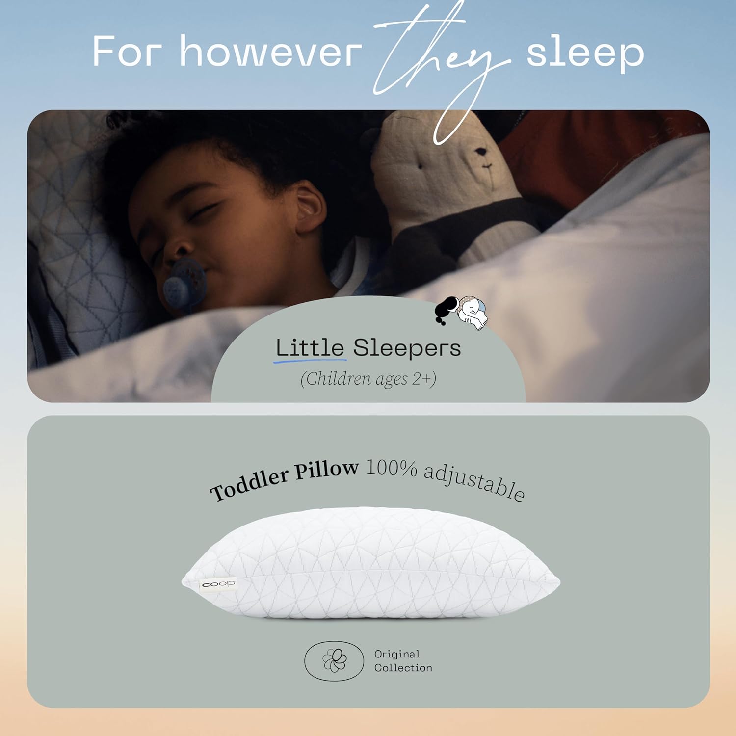 Coop Home Goods Original Toddler Adjustable Pillow, Soft, Breathable, Washable Mini Bed Pillow for Kids with Premium Memory Foam and Zippered Cover, CertiPUR-US/GREENGUARD Gold
