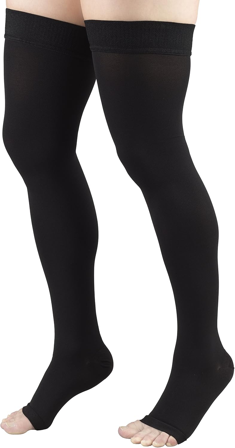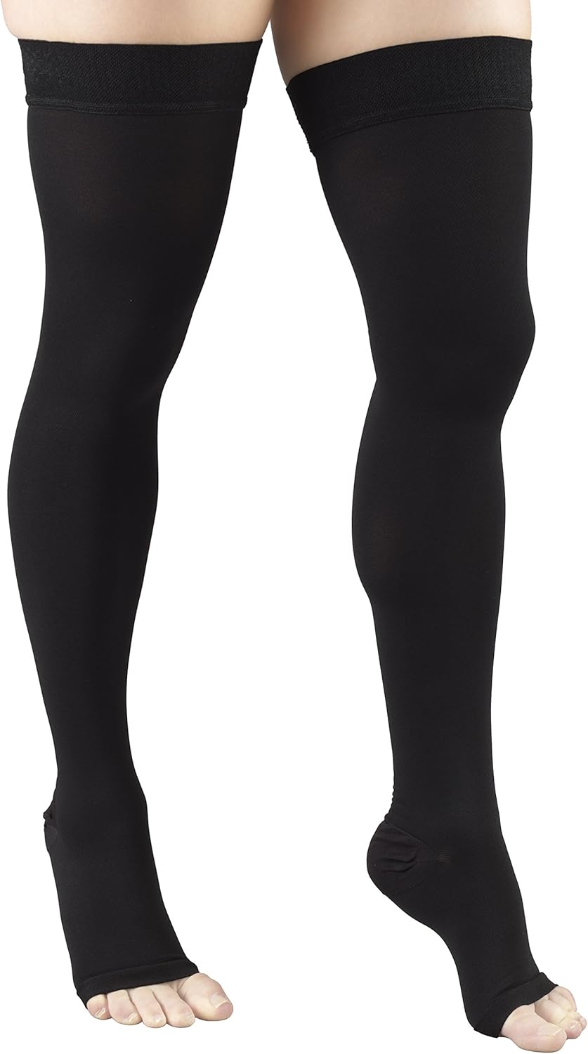 Truform 20-30 mmHg Compression Stockings for Men and Women, Thigh High Length, Dot-Top, Open Toe, Black, Medium