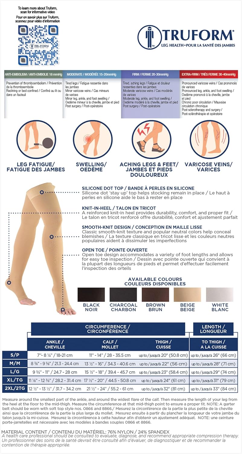 Whether you’re on your feet all day, traveling, or simply in need of some extra support, these compression stockings offer the perfect blend of style and functionality. Say goodbye to tired, achy legs and hello to all-day comfort with Truform Compression Stockings. Choose size Medium for the perfect fit and experience the difference for yourself.